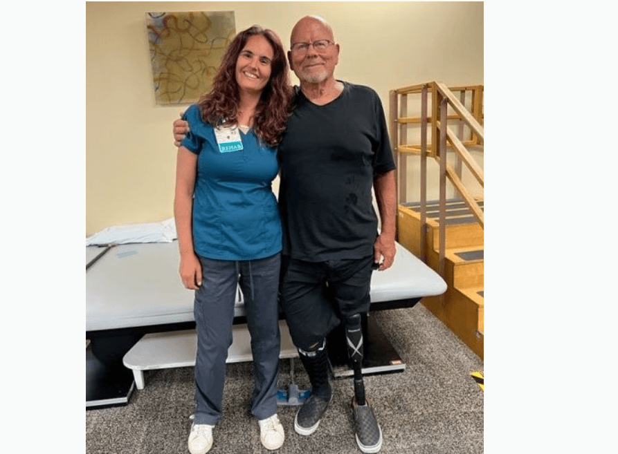 After a trying year and a half of prosthetic adjustments and working faithfully in physical therapy with Stanton and her colleague, physical therapist assistant, Brian Wong, Duncan finally graduated from physical therapy in July of 2023. At that point not only was he living and walking independently, but he was swimming – 2000 yards a week, two-miles a day!